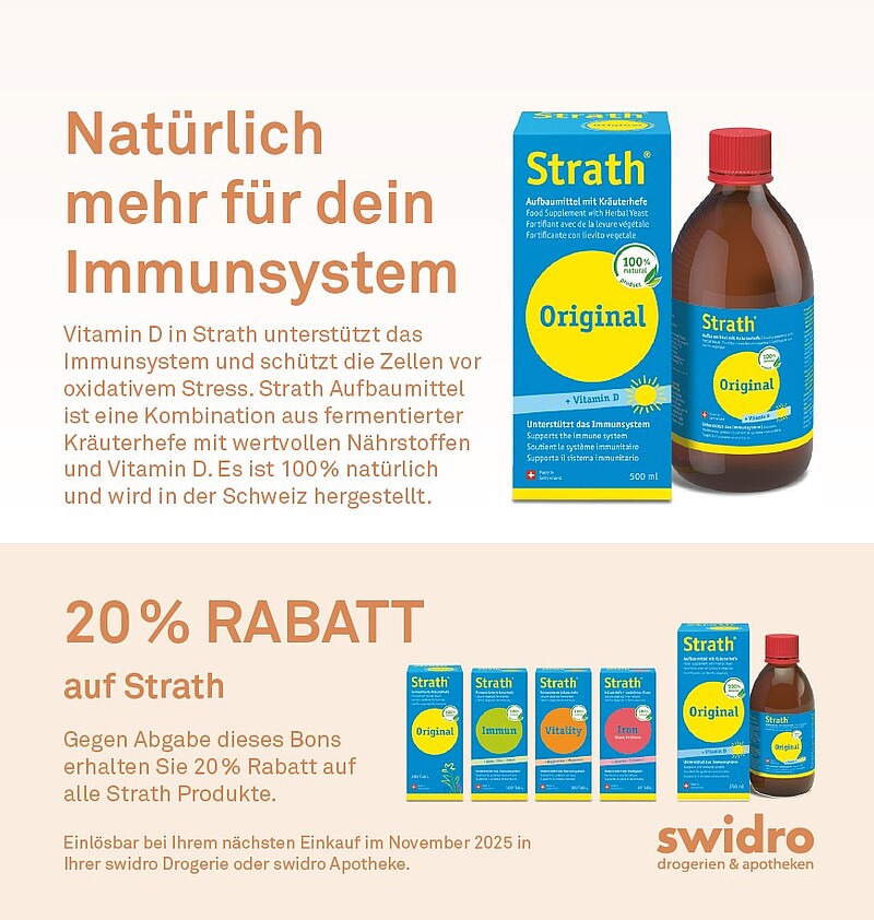 Gegen Abgabe des Bons erhalten Sie 20 % Rabatt auf alle Strath Produkte.